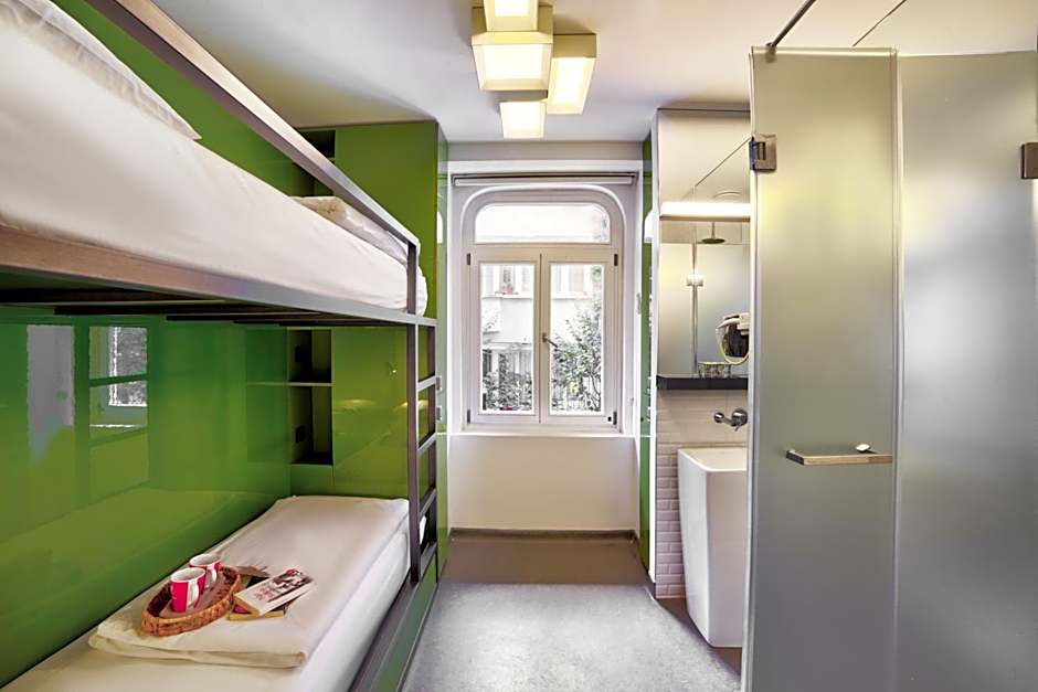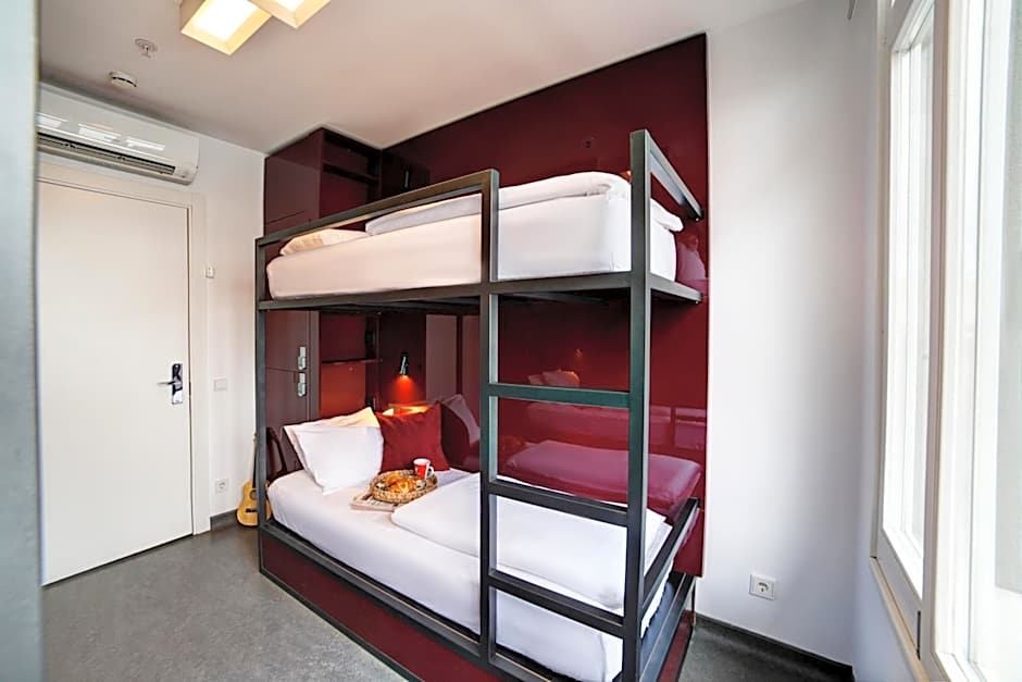 Featuring a contemporary design, this room includes air conditioning, heating and a safe box. It has a shower and a sink in the room, and an external shared toilet. There are reading lamps by each bed.